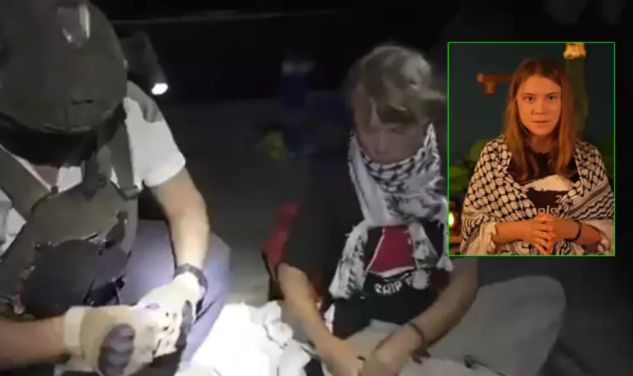 அவர்களது படகுகள் இஸ்ரேலின் கட்டுப்பாட்டில் இருக்கும் கடல் எல்லைக்குள் நுழைந்தபோது, இஸ்ரேல் கடற்படையினர் அங்கு விரைந்து சென்று கிரேட்டா தன்பெர்க் மற்றும் அவரது குழுவினரை தடுத்து நிறுத்தினர். அவர்கள் கொண்டு வந்த நிவாரண பொருட்களை பறிமுதல் செய்த இஸ்ரேல் கடற்படையினர், கிரேட்டா தன்பெர்க் மற்றும் குழுவினரை இஸ்ரேலில் உள்ள அஷோத் துறைமுகத்திற்கு கொண்டு சென்றனர். அவர்கள் அனைவரும் பாதுகாப்பாக இருப்பதாகவும், விரைவில் அனைவரும் திருப்பி அனுப்பப்படுவார்கள் என்றும் இஸ்ரேல் தரப்பில் தெரிவிக்கப்பட்டுள்ளது.