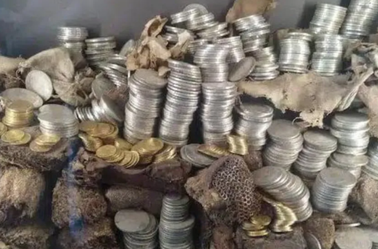 அந்த கண்ணாடிப்பேழைக்குள் 1790க்கும் 1840க்கும் இடைப்பட்ட காலகட்டத்தைச் சேர்ந்த சுமார் 2,000 தங்கம் மற்றும் வெள்ளி நாணயங்கள் வைக்கப்பட்டிருந்தன.