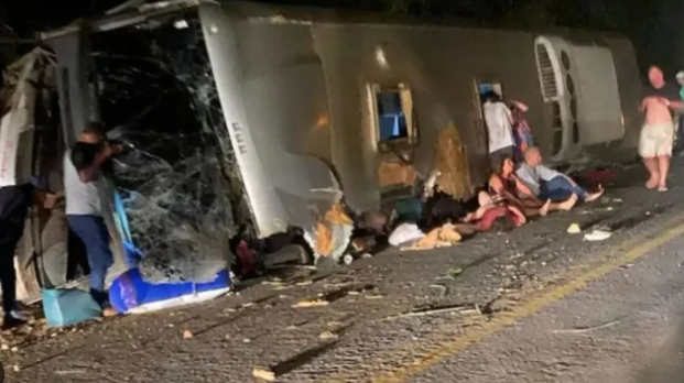 ப்ரூமாடோ (Brumado) நகருக்குச் சுற்றுலா சென்ற சுமார் 30 பயணிகளை ஏற்றிச் சென்ற பஸ், திடீரென சாரதியின் கட்டுப்பாட்டை இழந்தது. கட்டுப்பாட்டை இழந்த பஸ், வீதியின் ஓரத்தில் இருந்த பாறைகளில் மோதிவிட்டு, பின்னர் மணல்மேட்டில் மோதி கவிழ்ந்தது.