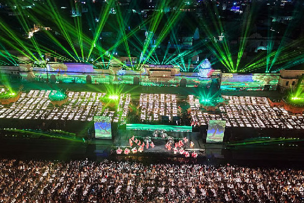 இதன்போது சரயு ஆற்றின் கரையில் 26,17,215 இலட்சம் அகல் விளக்குகள் ஏற்றி உலக சாதனை படைக்கப்பட்டது.