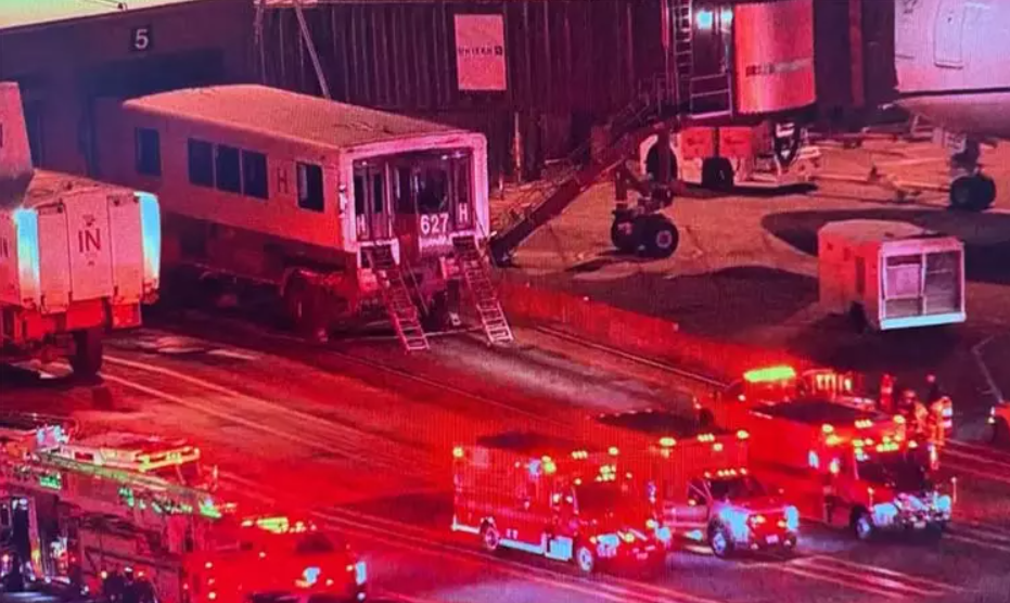 உடனடியாக காயமடைந்தவர்கள் மீட்கப்பட்டு அருகில் உள்ள மருத்துவமனையில் சிகிச்சைக்கு அனுமதிக்கப்பட்டனர். இந்த விபத்து தொடர்பாக விமான நிலைய அதிகாரிகள் விசாரணை நடத்தி வருகின்றனர்.