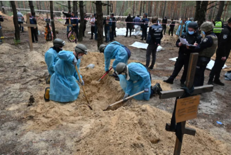 கிழக்கு உக்ரைனில் அமைந்துள்ள இசியம் நகர பைன் மரக் காட்டில் இந்த சடலங்கள் அனைத்தும் புதைக்கப்பட்டுள்ளன.