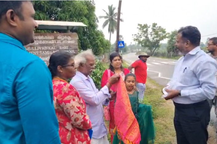 முல்லைத்தீவு மாவட்டத்திற்கான திடீர் வருகையின்போது அவரை அப்பகுதி பொதுமக்கள் வரவேற்று, பொன்னாடை போர்த்தி மரியாதை செய்தனர்.