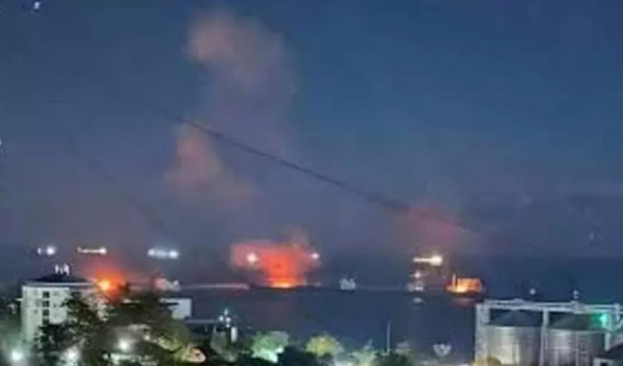 ரஷியா- உக்ரைன் இடையேயான போர் 3 ஆண்டுகளுக்கு மேலாக நீடித்து கொண்டிருக்கிறது. இந்த நிலையில் ரஷியாவின் முக்கிய துறைமுகம் மற்றும் எண்ணை கப்பல் மீது உக்ரைன் டிரோன் தாக்குதல் நடத்தி உள்ளது.