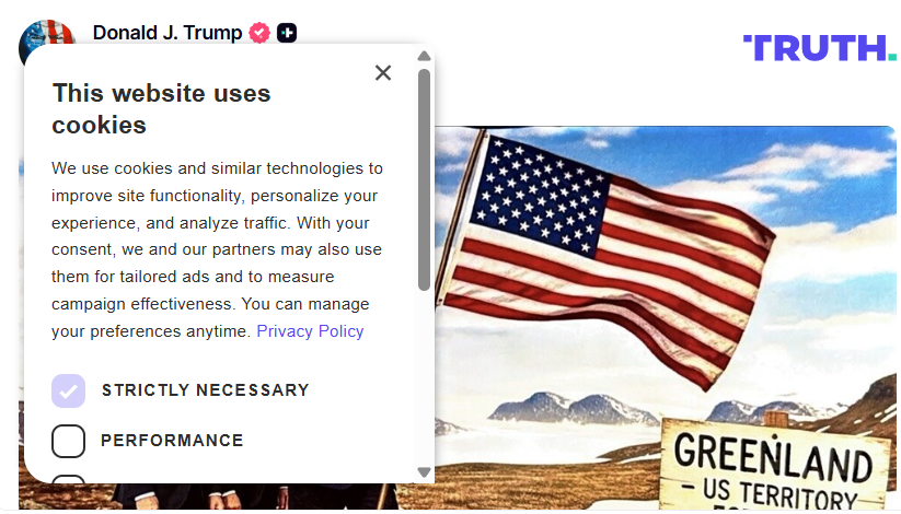 கிரீன்லாந்தில் அமெரிக்க தேசிய கொடியை ஏந்தி நிற்பதுபோல், தனது AI படத்தை தனது சமூகவலைத்தளத்தில் Truth Social தளத்தில் அமெரிக்க ஜனாதிபதி ட்ரம்ப் பகிர்ந்துள்ளார்.