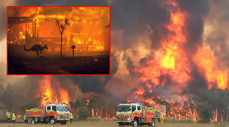 ஆஸ்திரேலியாவின் சில பகுதிகளில் வெப்பநிலை 50 டிகிரி செல்சியஸை எட்டியுள்ளதால், அங்குள்ள காடுகள் கொழுந்து விட்டு எரிகின்றன. விக்டோரியா மாகாணத்தில் மட்டும் 4 லட்சம் ஹெக்டேர் பரப்பளவிலான நிலங்கள் தீக்கிரையாகியுள்ளன. இதில் சுமார் 15,000 கால்நடைகள் உயிரிழந்துள்ளதாக தகவல்கள் தெரிவிக்கின்றன.