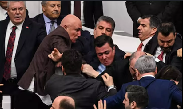 துருக்கி பாராளுமன்றத்தில் எம்.பி.க்கள் கைகலப்பு! ஒருவரையொருவர் தாக்கிக் கொண்டதால் பரபரப்பு!